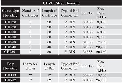 UPVC Filter Housings combine design simplicity with high filtering quality. UPVC Filter Housings offers wide range of flow capacities & contaminant holding capacities. Cartridge filters are normally used as polishing filter in almost all process industries.